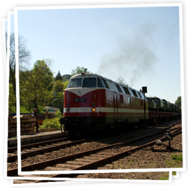 Diese zogen einen NVA Sonderzug, Personenzug und Güterzug.