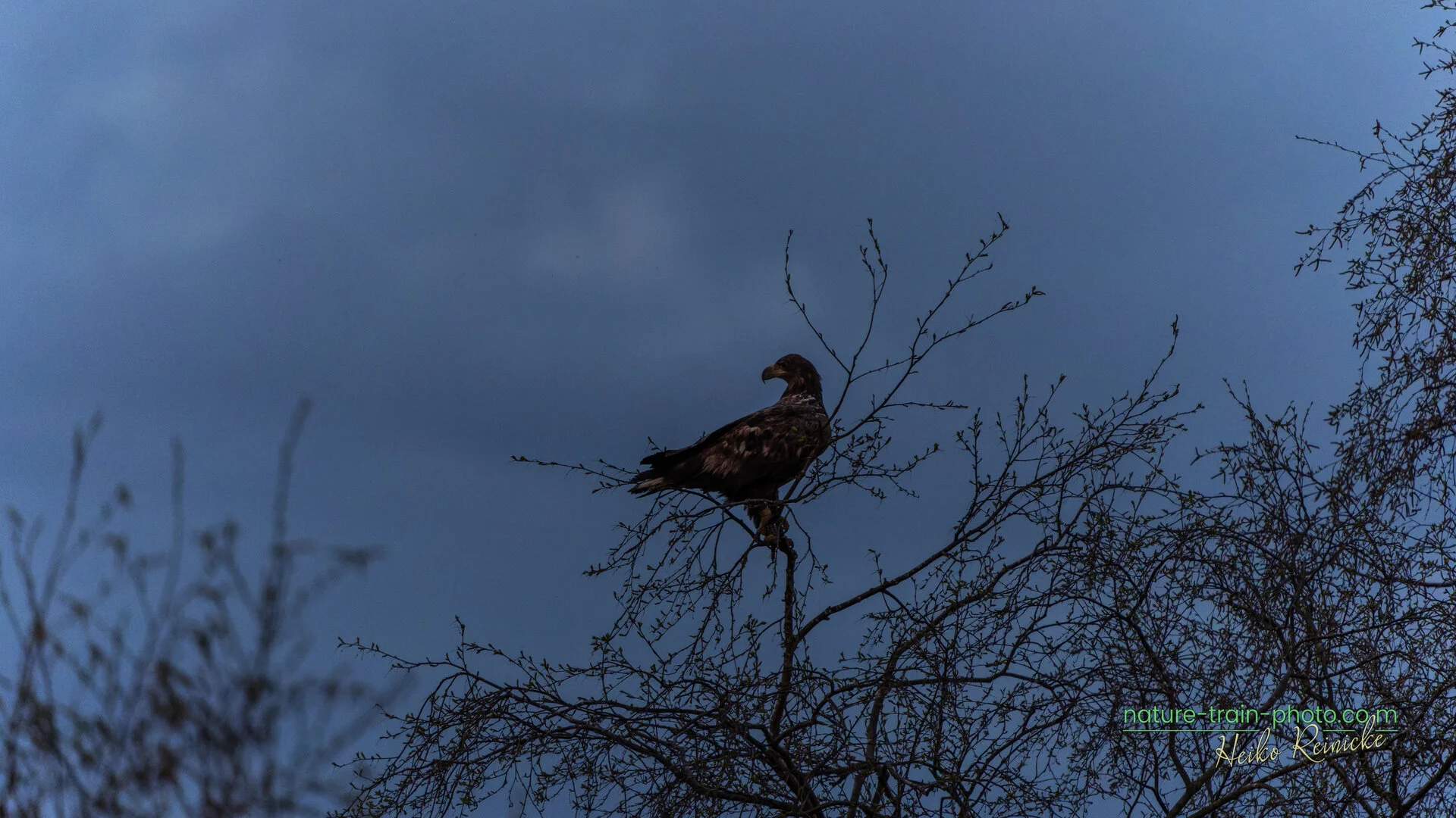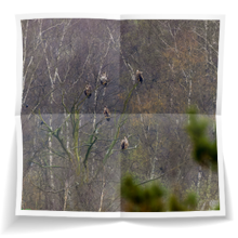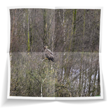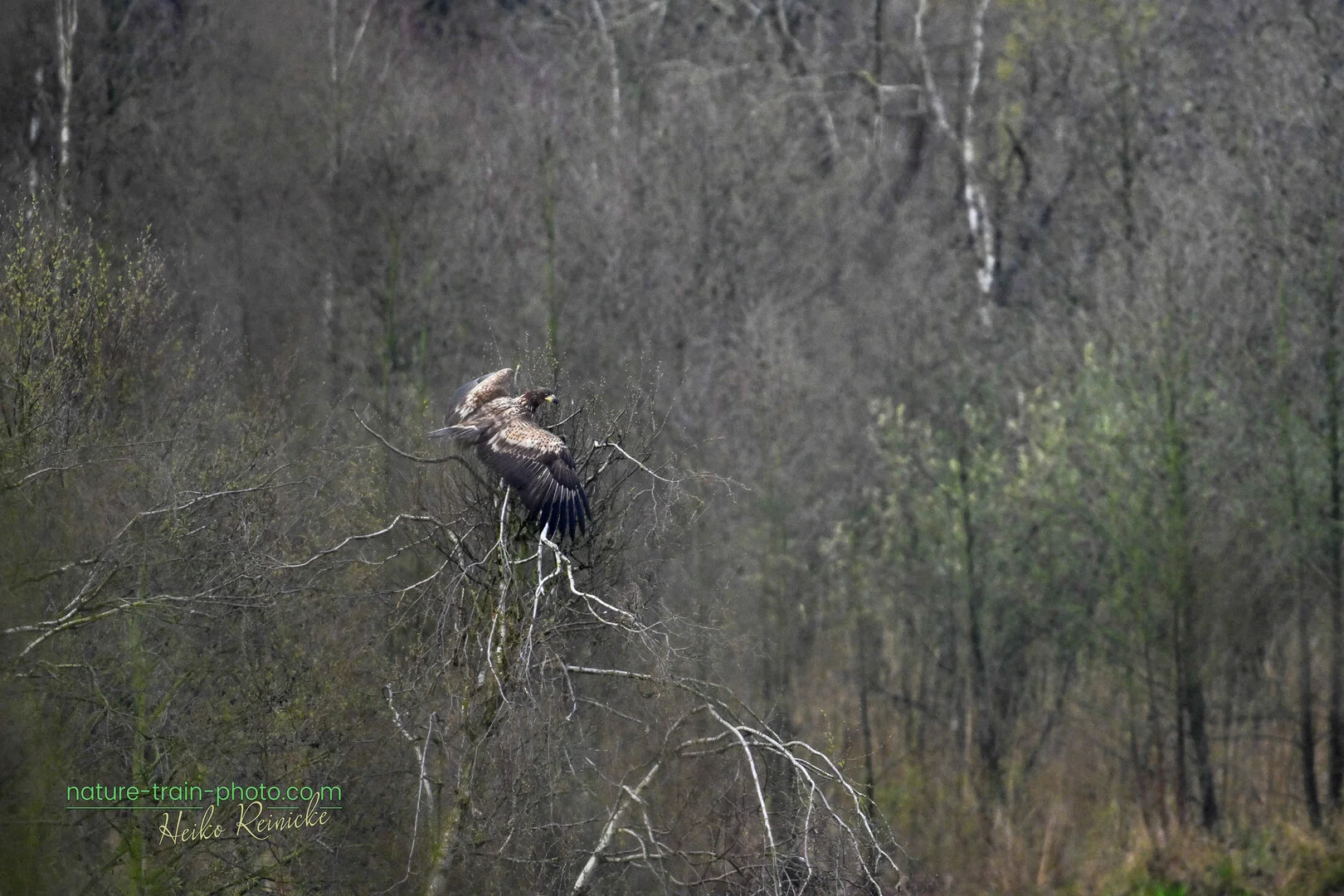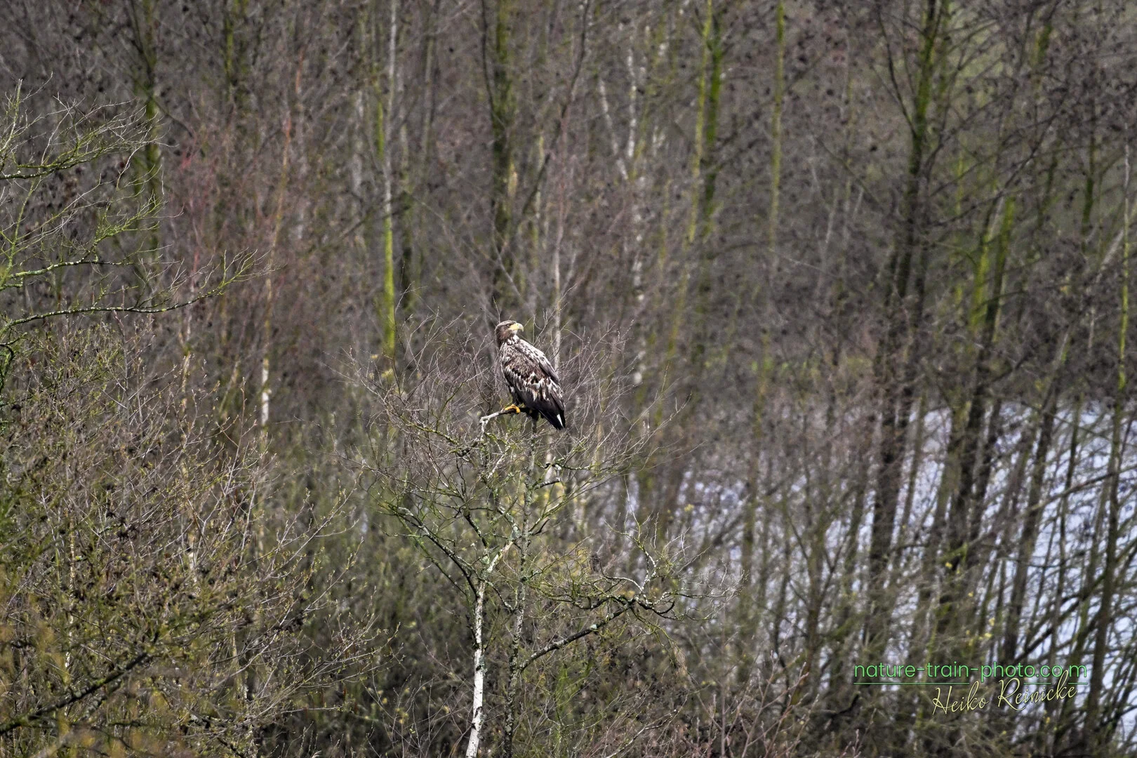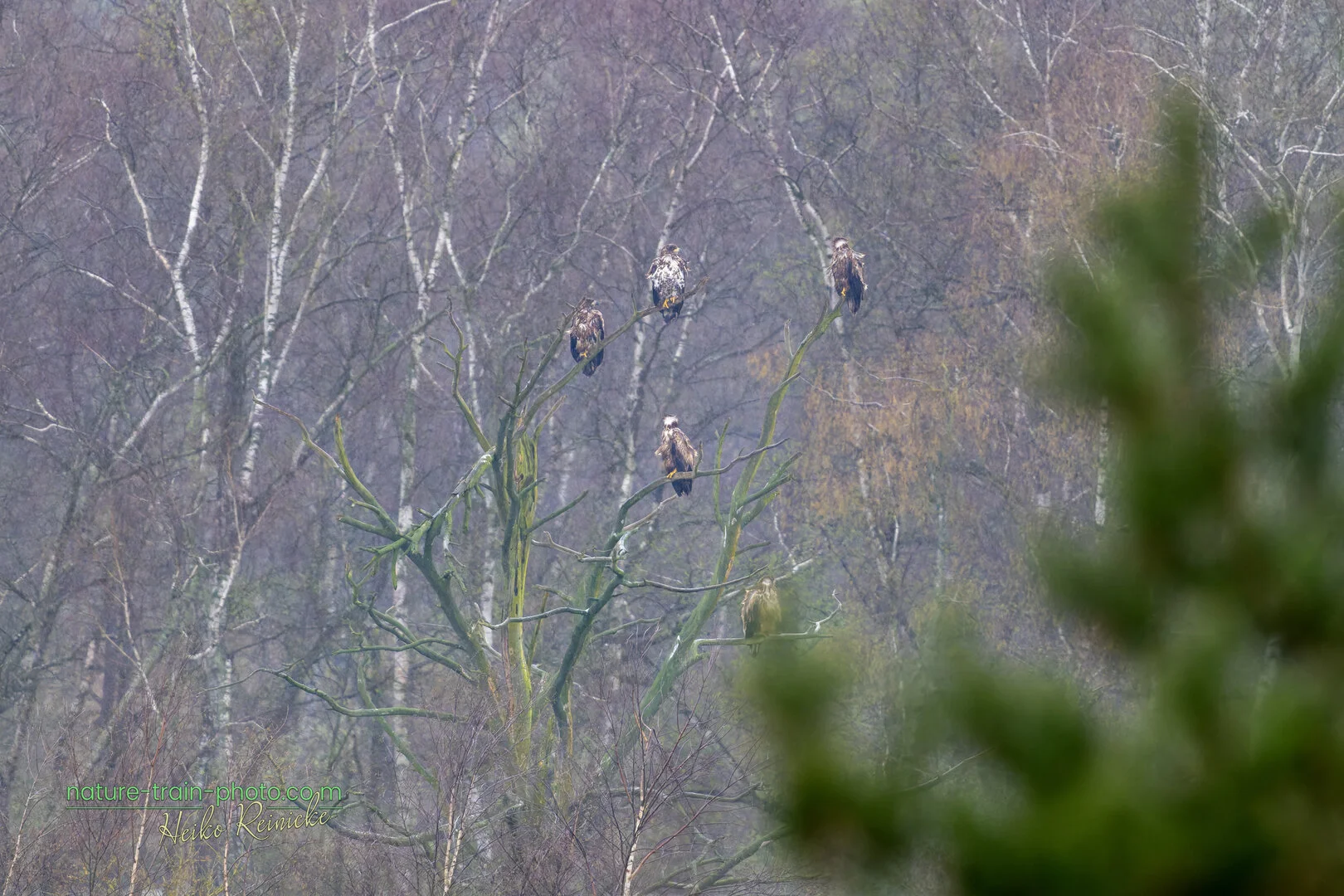 Bis zu neun Adler im Baum am See zählte ein Fotograf in der Woche zuvor und zeigte uns ein "Beweisfoto". Wir sahen sehr weit entfernt ganze fünf Seeadler in einen Baum am See sitzen und konnten es trotzdem nicht glauben.