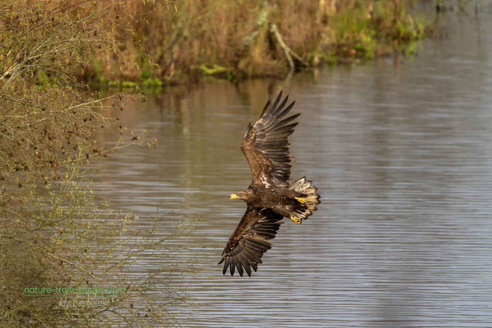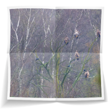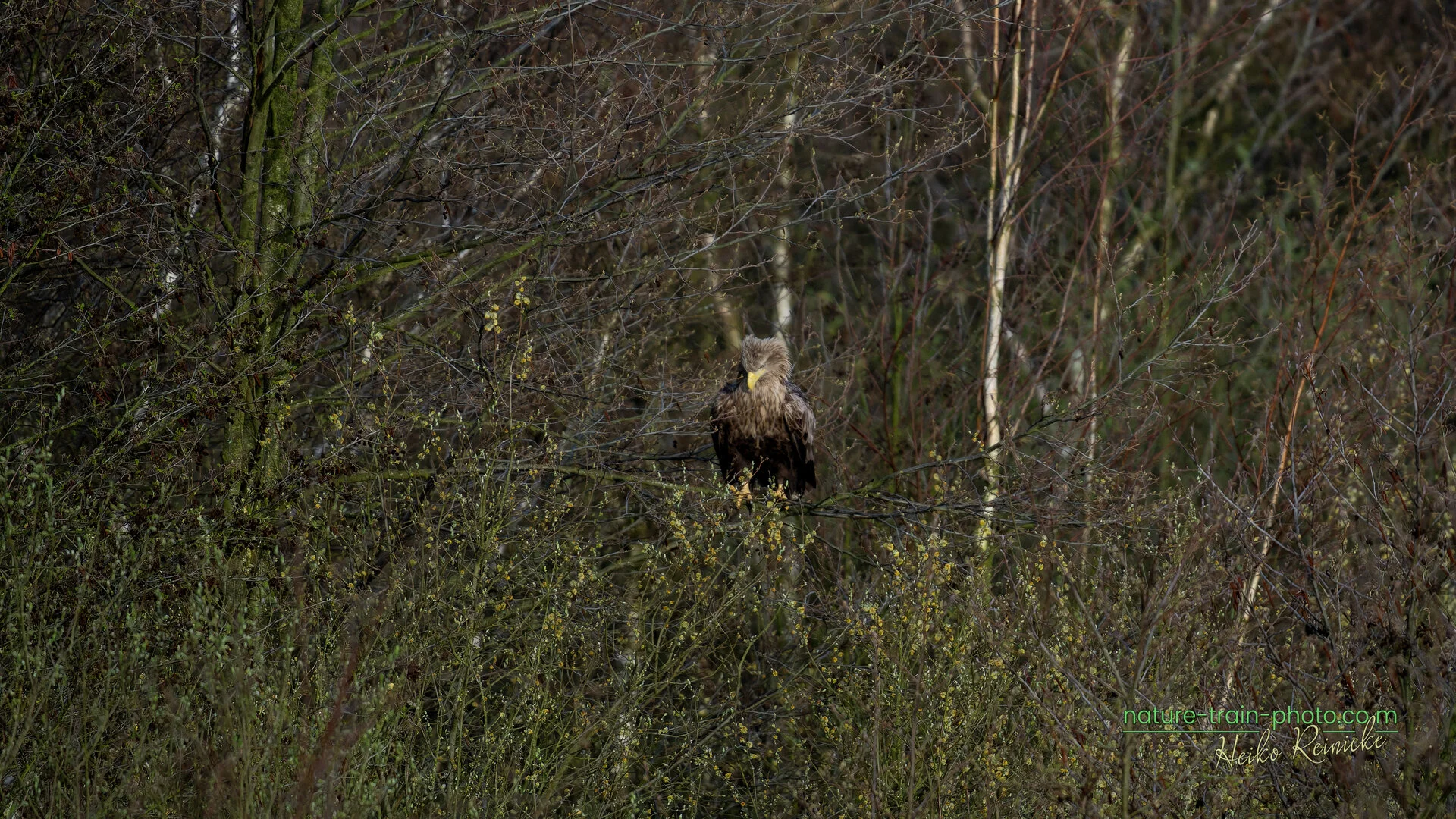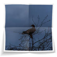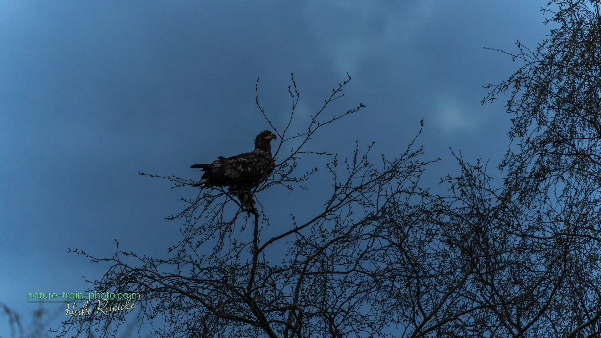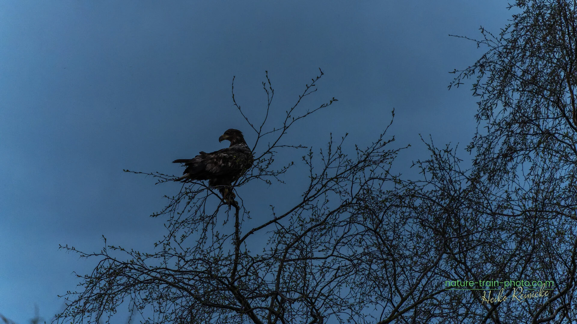 Bis zu neun Adler im Baum am See zählte ein Fotograf in der Woche zuvor und zeigte uns ein "Beweisfoto". Wir sahen sehr weit entfernt ganze fünf Seeadler in einen Baum am See sitzen und konnten es trotzdem nicht glauben.