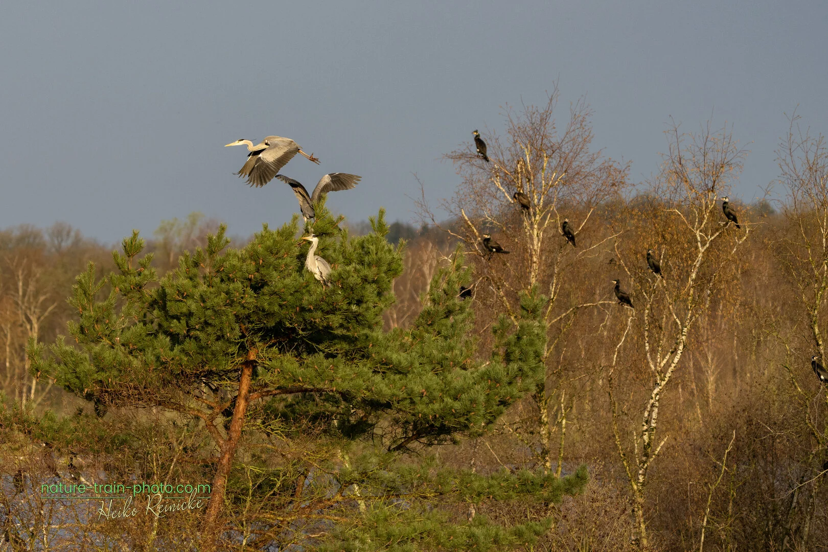 Zwei Fotografen waren schon da. Und nach dem noch so einige Fotografen kamen, flogen auch Reiher und jede Menge Kormorane nach und nach ein und besetzten den einen oder anderen Baum.