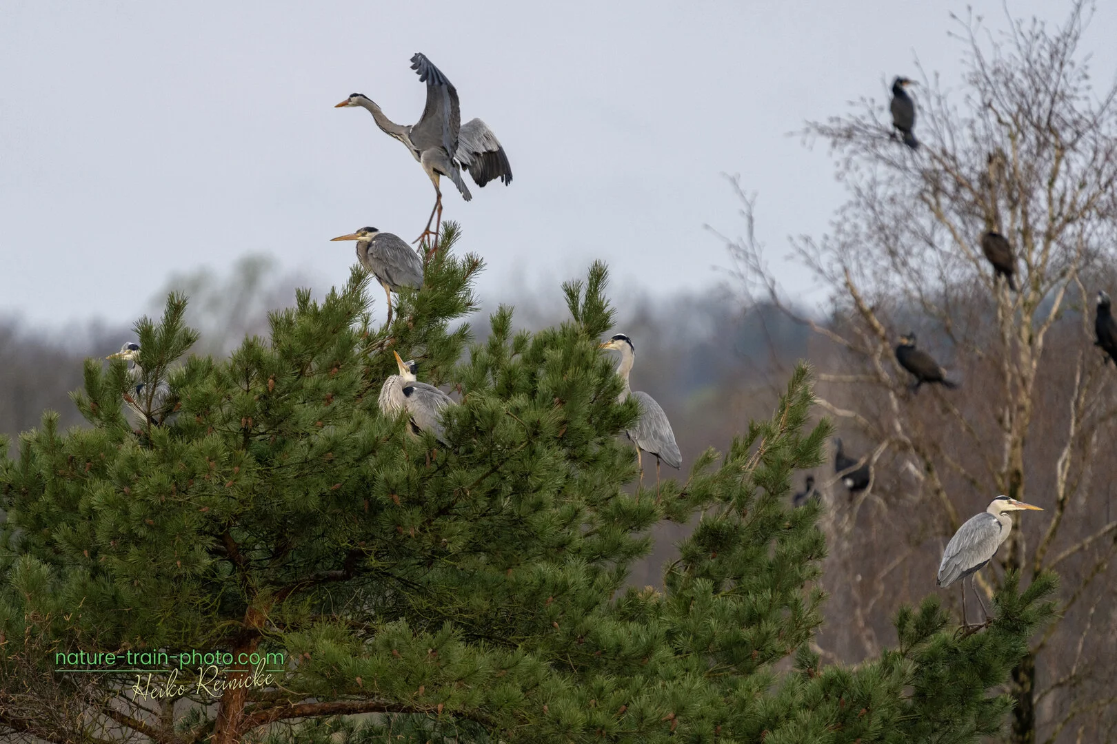 Wir waren nicht die ersten ;-) , schon einige Fotografen waren vor uns da. Und wieder begann es mit Kormoranen und jede Menge Graureiher und einiger Silberreiher.