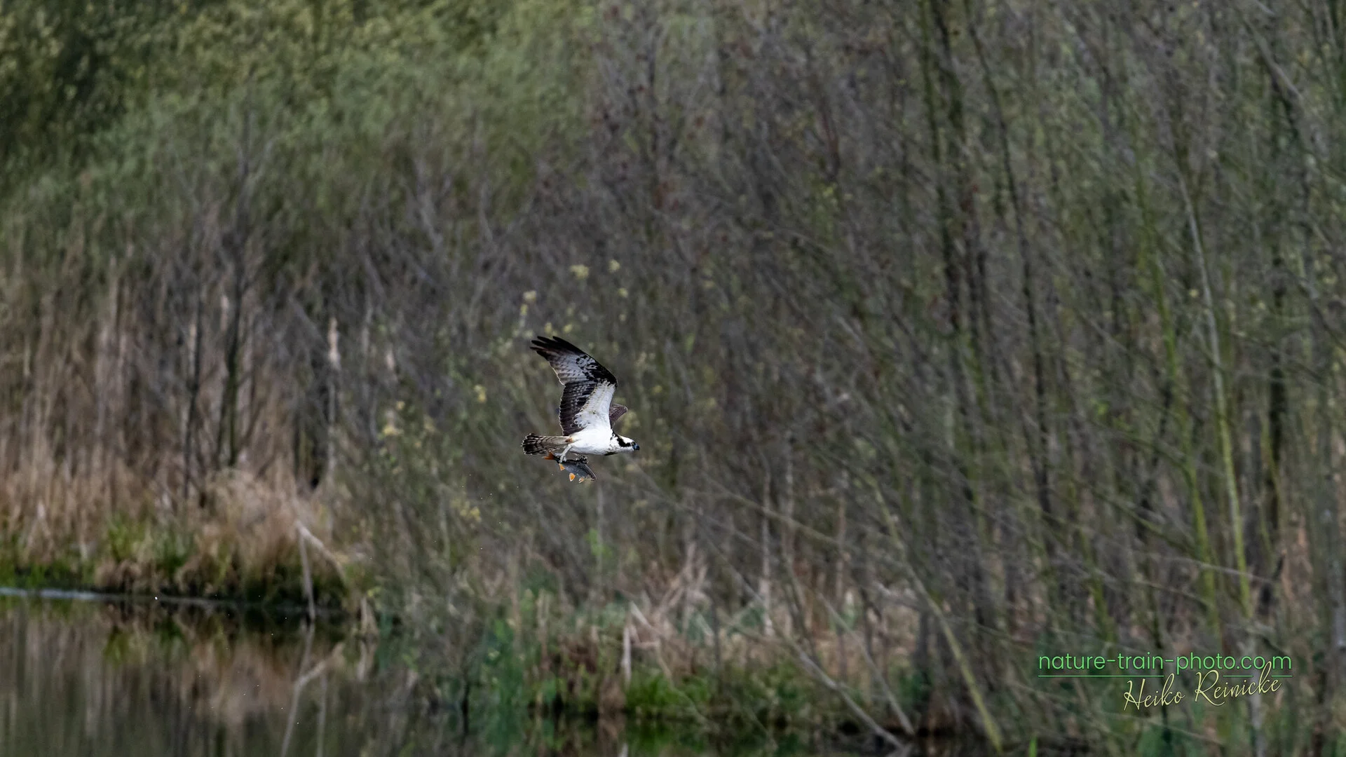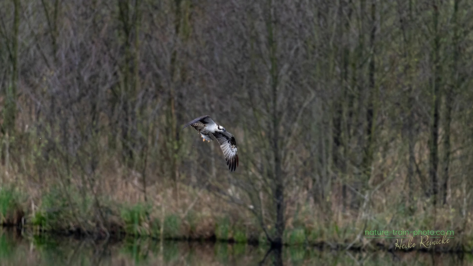 Fischadler kamen nur zum Jagen vorbei. Die Seeadler blieben aber des Öfteren in den Bäumen am Plauen See sitzen.