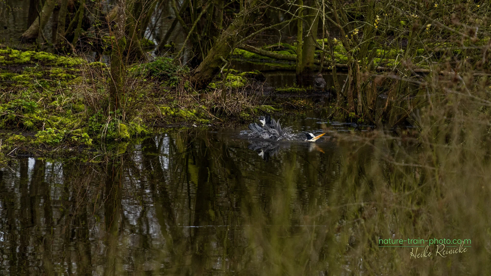 Was alle Fotografen erheiterte. Ein Eisvogel machte immer wieder von sich hören, kurz sahen wir ihn unterhalb auf einen Baum. Fotografieren ließ er sich aber nicht.